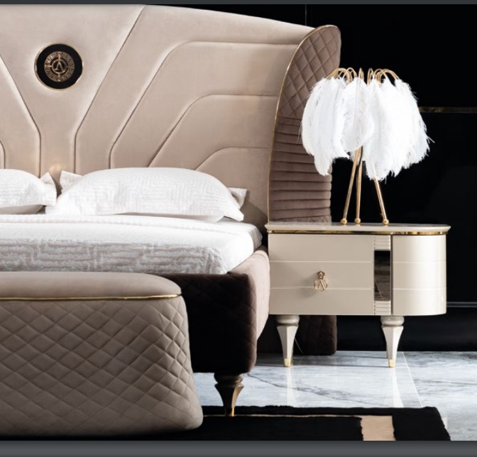 Luxury Set Bedroom Bed Bedside table Chest of drawers Stool Group Suite new 5-piece.
