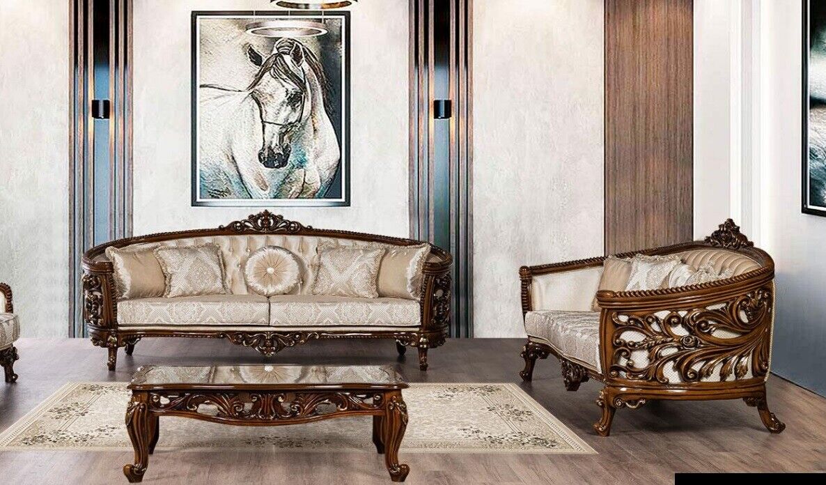 Sofa set 3+3 Seater Group Sofa Armchair Sofas Fabric Classic s Set Baroque