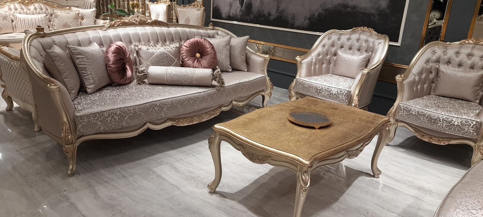 Classic Chesterfield Suite 311 Seat with Coffee table Velvet Gold Wood